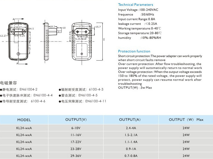 短路保護(hù): 電源適配器在短路解除時(shí)能正常工作恢復(fù)